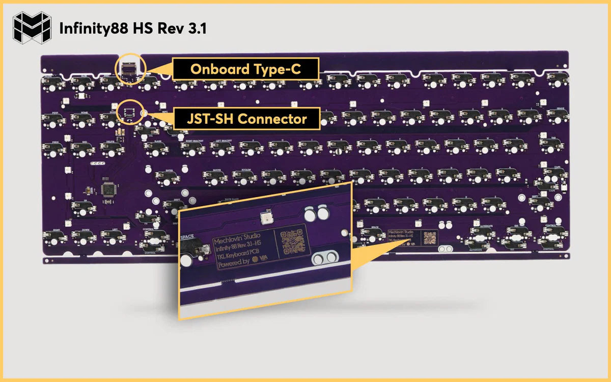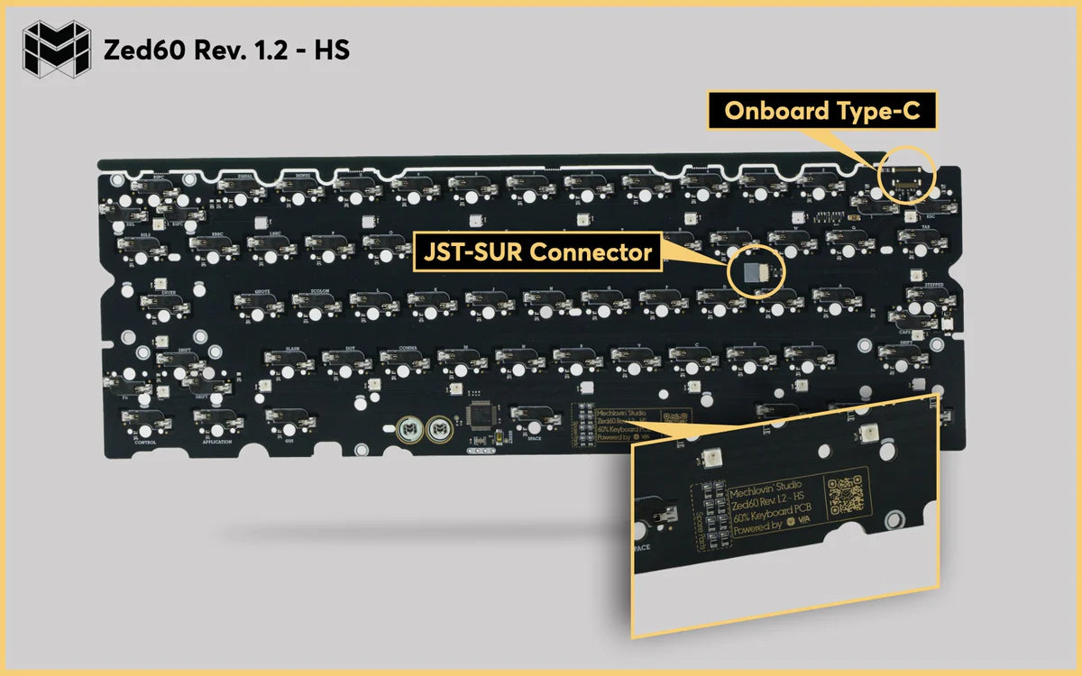 All PCBs include both an onboard USB-C and JST connector. The onboard USB-C is removable if you want to go with the JST option.
