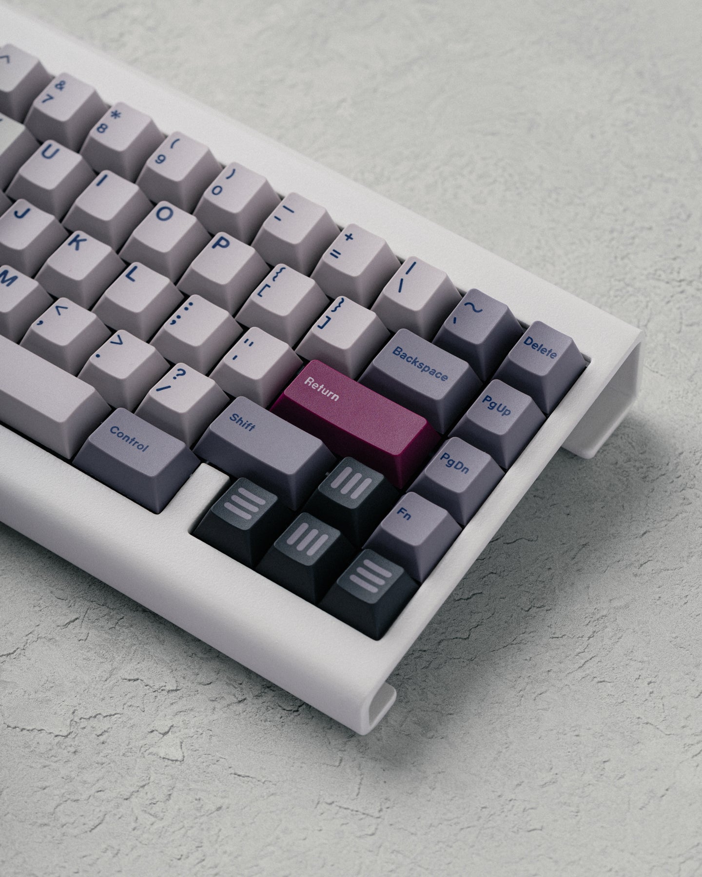 TLDR; A bent steel 65% keyboard assembled with magnets for an open-air design.  The magnetic top mount provides a firm yet responsive typing experience and facilitates easy tuning due to the screwless design. The unique powdercoated finish will make this board pop in any setup, and the VIA compatible hotswap PCB makes this board accessible for all - no soldering required.  Designed by Mike Peckover (@m.peckover).